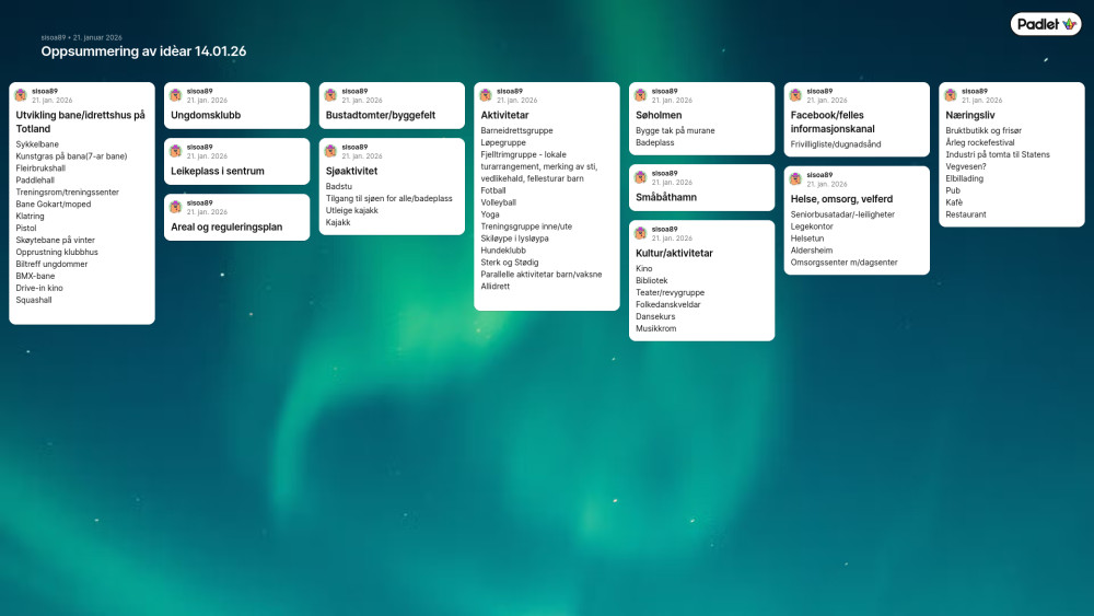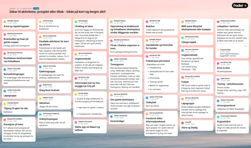 Alle idéane blir tekne med vidare til neste møte, men kva som blir jobba vidare med etter det møtet kjem heilt anpå kven som kjem og kva folk engasjera seg for. Så om du engasjere deg for noko og ynskjer det skal bli noko av - kom på oppfølgingsmøtet😃🙌 Du treng ikkje å ha vert med på første møtet for å delta på det🤩 Oversikt ligg ved her og blir delt på https://bryggja.no/